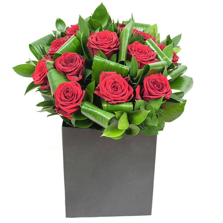 Embrace the timeless elegance of our red rose arrangement, expertly designed to enhance any environment with its stunning beauty.